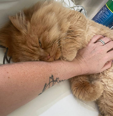 Asif, overcome with happiness, rang my doorbell, unnecessary as the voucher awaited him outside. He asked for my cat, at that moment Mr Grumps decided to make his appearance and the rest is history!