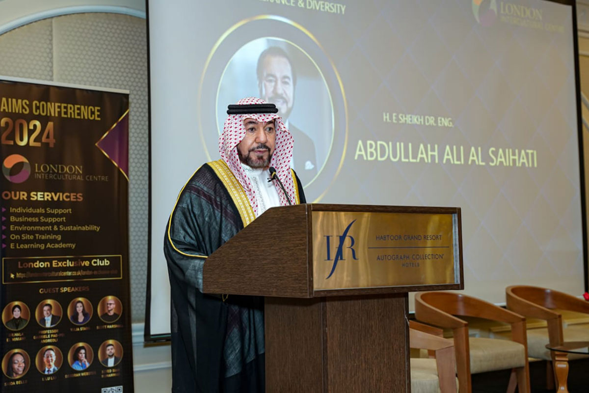 The opening ceremony was inaugurated by Sheikh Dr.Eng. Abdullah Ali Al Saihati, honorary president of London Intercultural Center followed by the keynote speech of Hadi Brenjekjy, the executive director of the center who highlighted the uniqueness of human intelligence in comparison to the vast opportunities ,capabilities,possibilities and challenges that AI poses in the modern era of digital transformation. Prof.Gabriele Pao-pei Andreoli,president of the Institute of Advanced Studies and cooperation shed light on the scientific breakthrough and the advanced projects the IASC has initiated and its deep relation to preserving human history ,culture and values. Sheikh Salem Bin Sultan Al Qasimi the guest of honor at the AIMS and the awardee of the Multiversal Innovator Merit in the Category of cultural tolerance, described in his featured speech the advancement of the UAE in terms of digital maturity, AI implementation and the focus on scientific research.